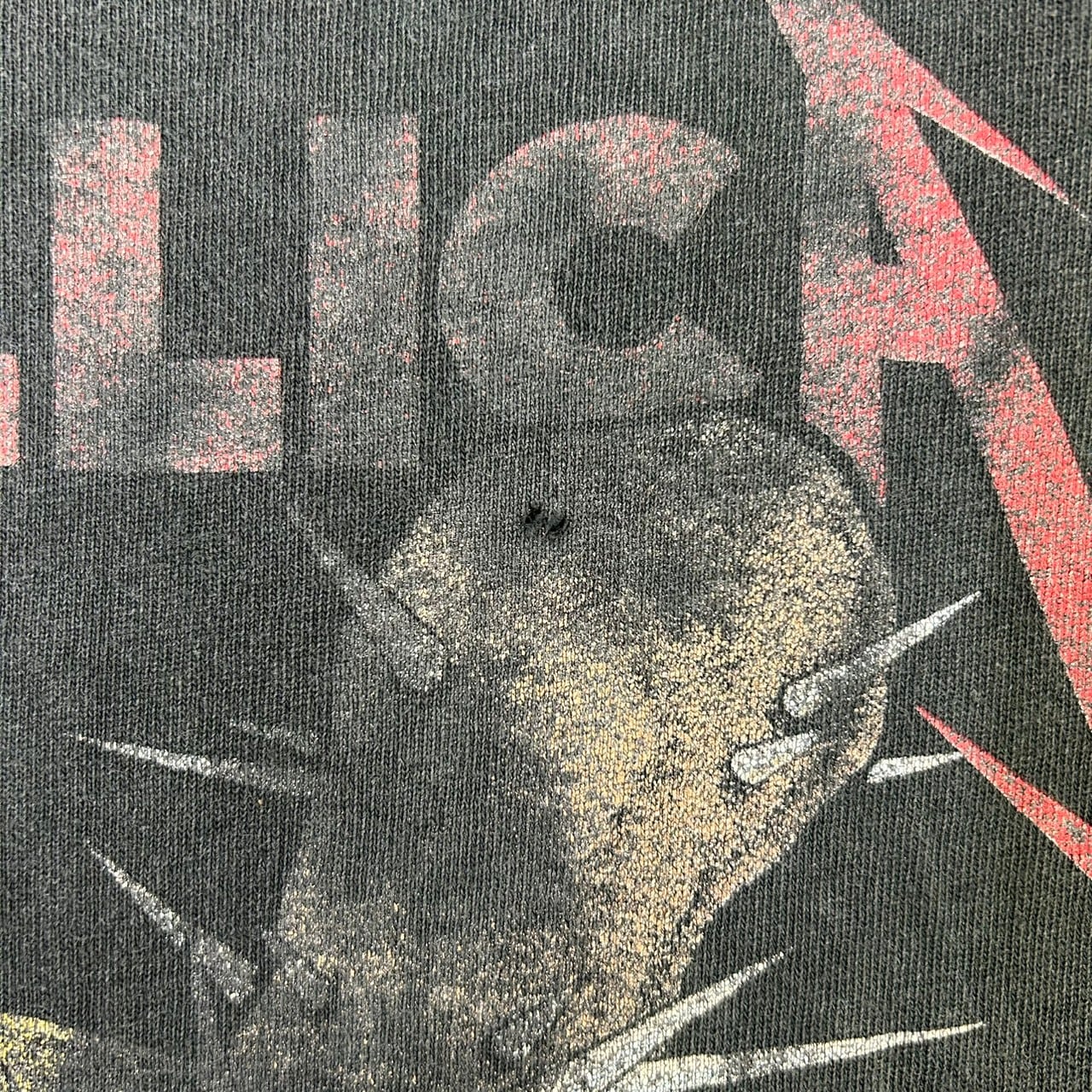 スパイクが突き刺さったスカルグラフィックがインパクト抜群で、退色したブラックボディとの相性も良く、唯一無二の雰囲気を放つ1枚です。